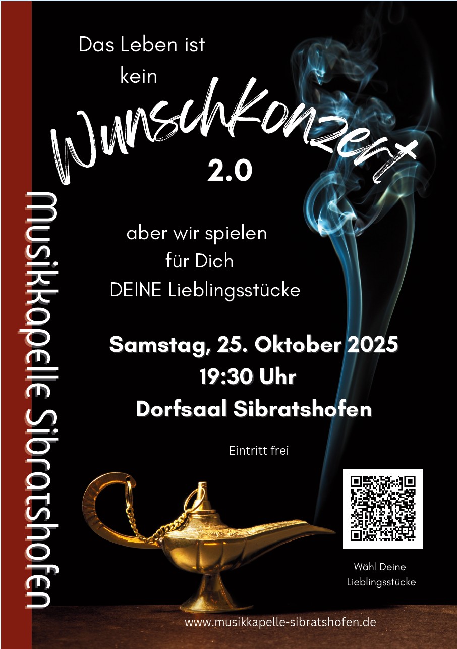 Du hast bis zum 19.10.2025 Zeit, bis zu 15 Stücke auszuwählen. Ob deine Favoriten auf der Playlist sind? Du erfährst es am 25.10.2025 um 19.30 Uhr im Dorfsaal Sibratshofen!